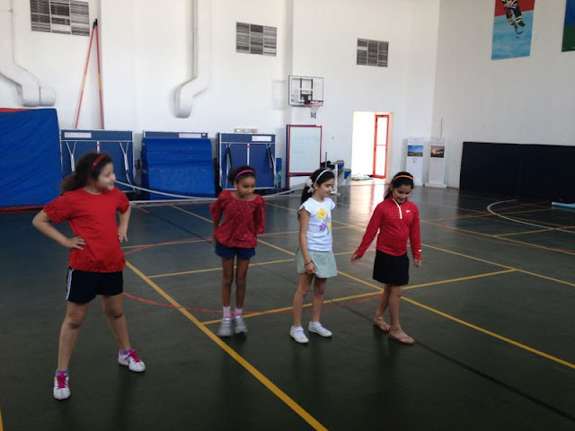 Les élèves ont formé des groupes de 4 et ont présenté une chorégraphie sur un titre musical et selon des critères définis comme des verbes d'action etc.